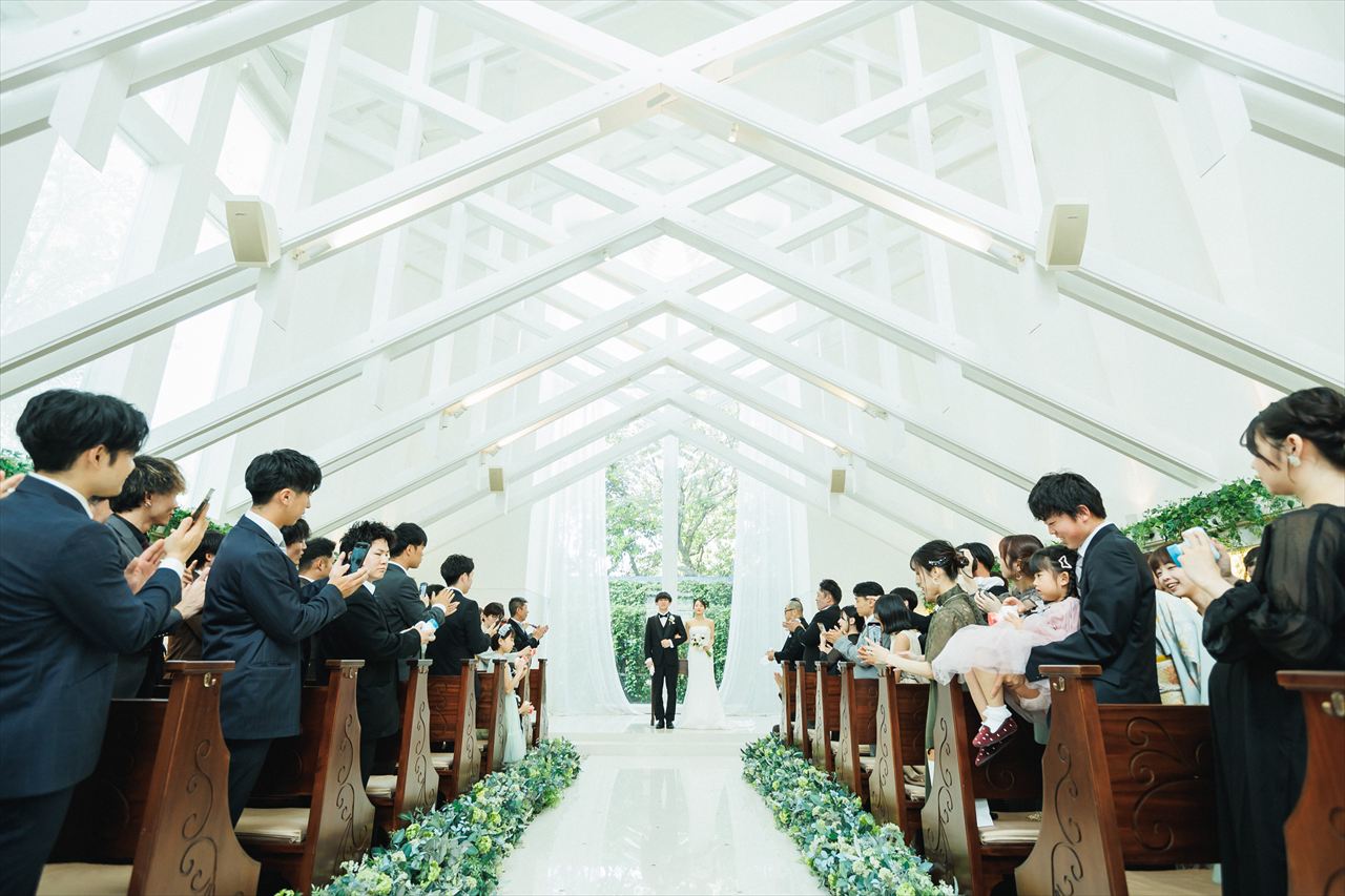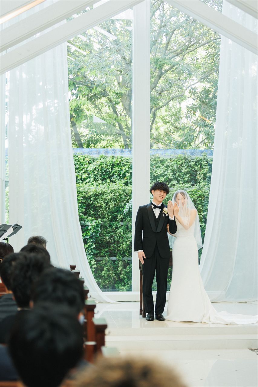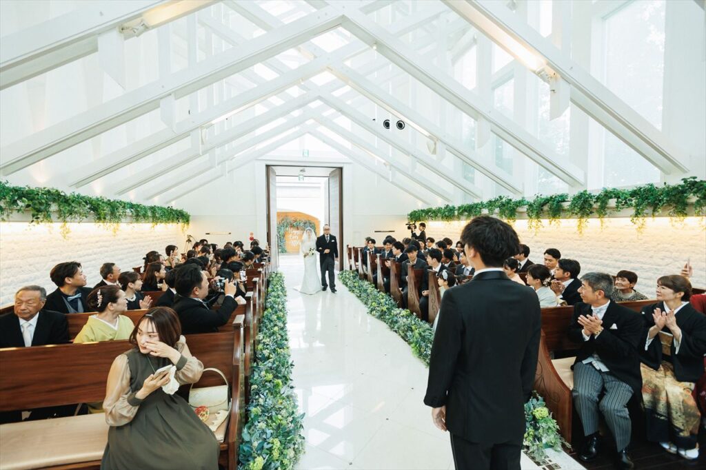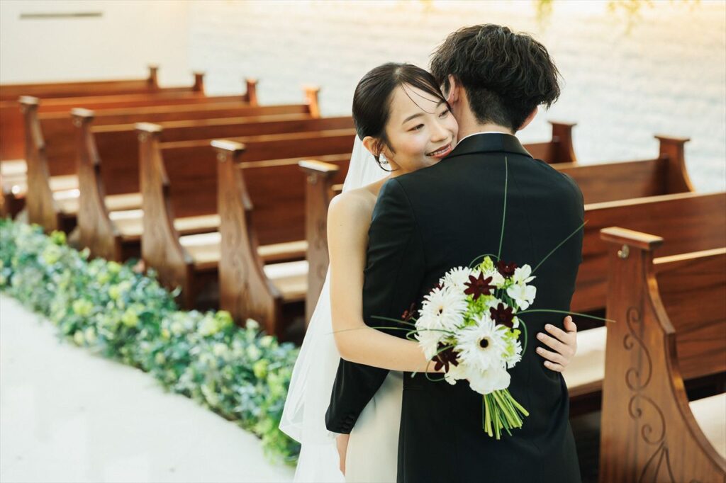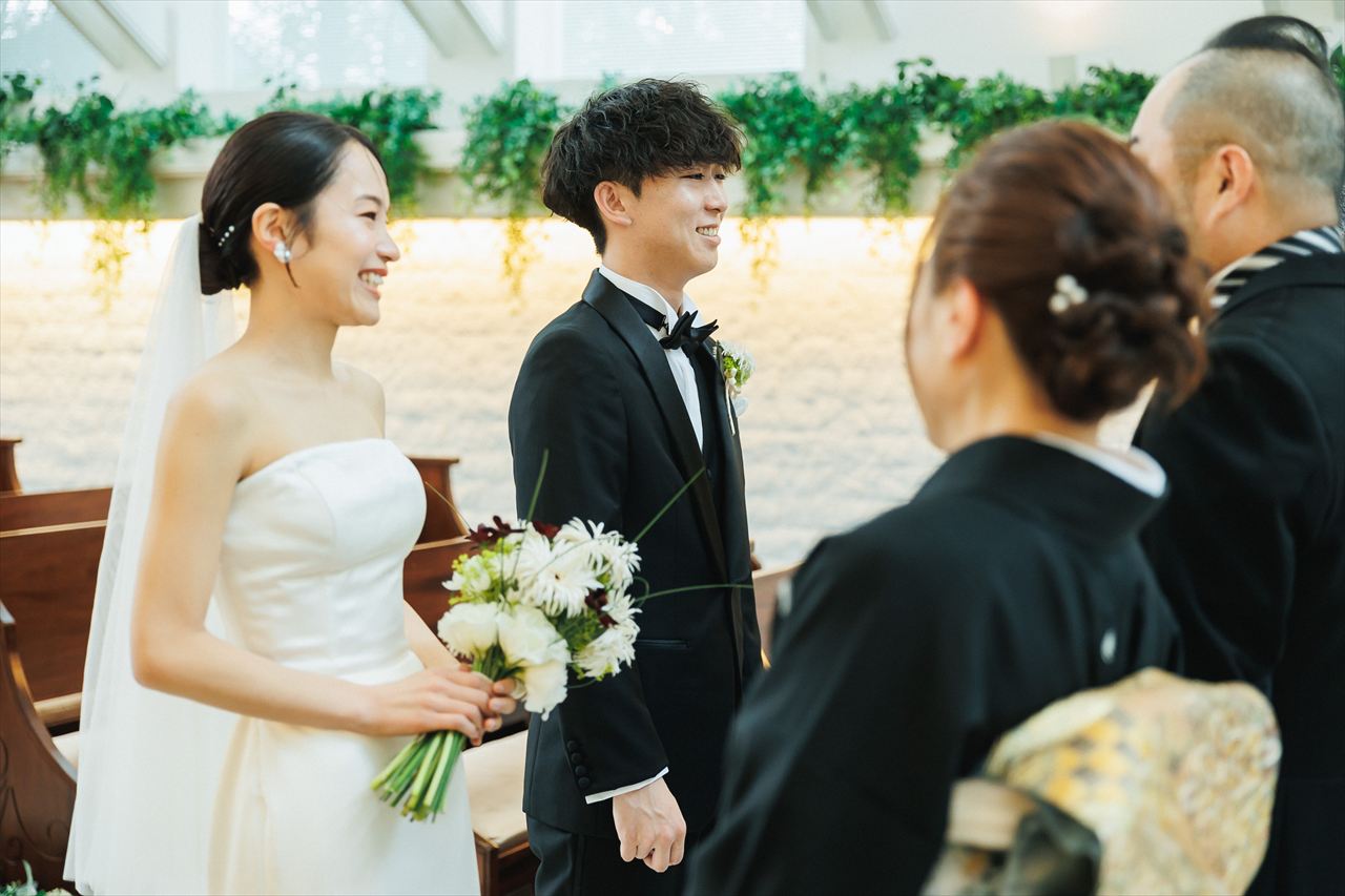 当日を迎えるまでの間、楽しみな気持ちと同時に、全員が健康に参列できるか、お天気は大丈夫か、無事に終えられるかなど、さまざまな不安もありました。しかし、チャペルに入った瞬間にその不安はすべて消え、温かい雰囲気に包まれながら特別な時間を過ごすことができました。