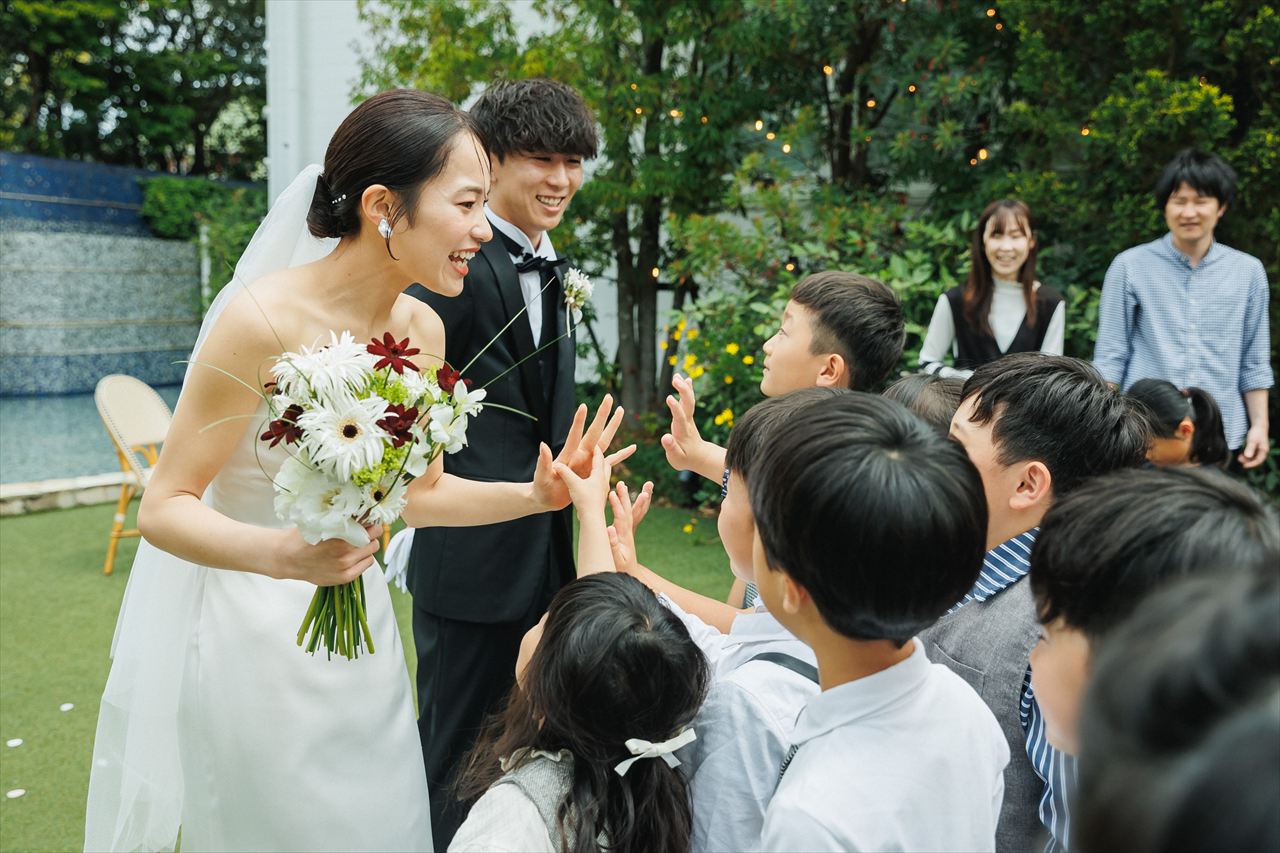 当日はたくさんのゲストに祝福されながら過ごすおふたりを近くでサポートさせていただきましたが、これまでのおふたりの努力が実る瞬間を一緒に創ることが出来て、私も幸せな気持ちでいっぱいでした。そしておふたりがご家族、ご友人などたくさんの方から愛されていることが伝わりました。